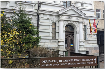 The KGB Museum in Vilnius, officially called the Museum of Occupations and Freedom Fights, is located in the former Soviet KGB headquarters and prison near Lukiškės Square. It focuses on the Soviet occupation of Lithuania from 1940–1991, showing how the regime persecuted, imprisoned, deported, and executed Lithuanians. Exhibitions include former prison cells, interrogation rooms, and an execution chamber, as well as displays on deportations to gulags, underground resistance, and the broader fight for Lithuanian independence.